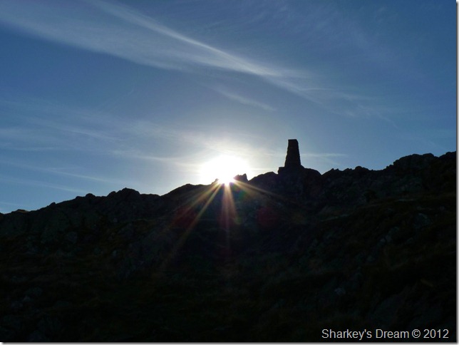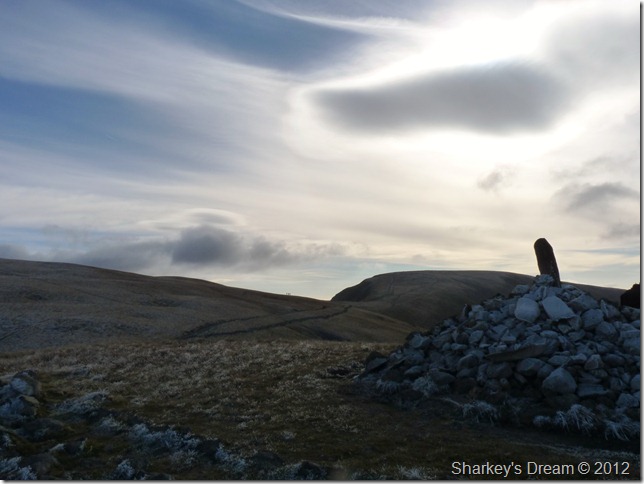 One more from the summit before I leave, the head of one of the walkers clearly visible to the left of the cairn. |