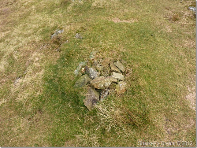 An overview of the now crumbling cairn marking Angletarn Pikes summit.