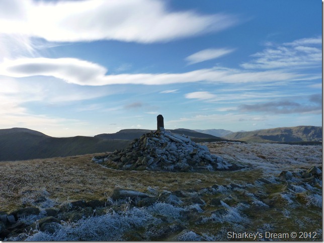 Frosty & possibly the coldest I had felt during the whole walk, but worth it. The Knott summit.