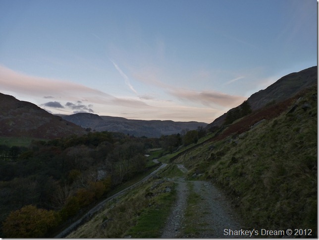 Gradually the pain eases & I am soon back on my feet, maybe a little less spring than I first set off nearly six hours ago. Paths are marred with ice, this causing the descent at times to be painfully slow, the scenery changes however once upon the valley floor, shadowed by the huge flank of Gray Crag the peaceful walk back along Pasture Beck was a fitting time to reflect on the days events not least of all the infection nestled within my chest – the grit underneath my boots soon took care of what ailed me.