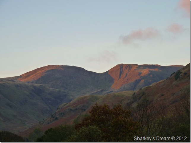 Hart Crag & Dove Crag receiving the first of the morning light. |