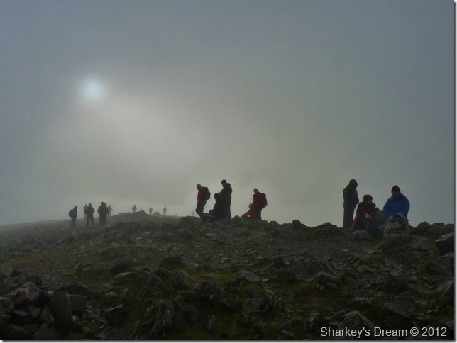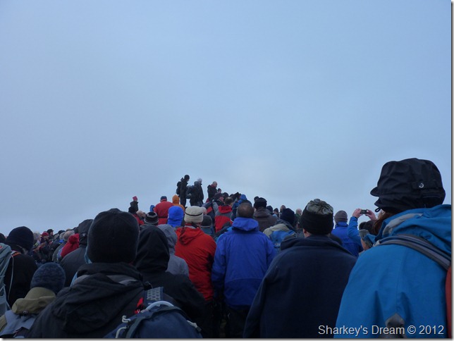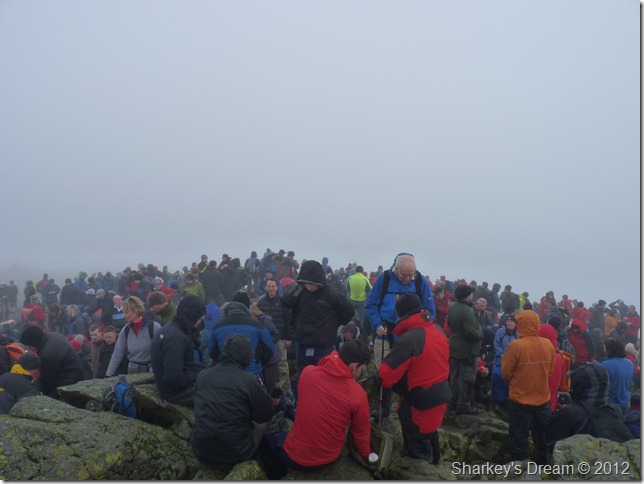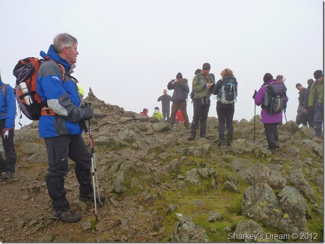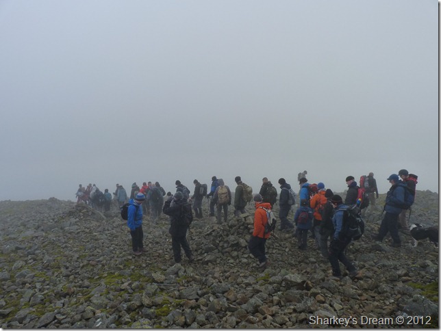 The summit was quickly filling up making standing in any one spot sometimes difficult, the rock underfoot was especially greasy which meant a wrong move could of been embarrassingly nasty for everyone involved.