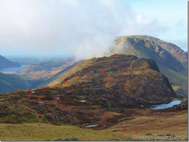 Our route would leave the old tramway after a short heave & take in the north west flanks of both Grey Knott & Brandreth. |