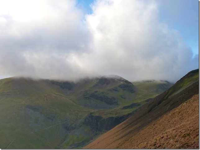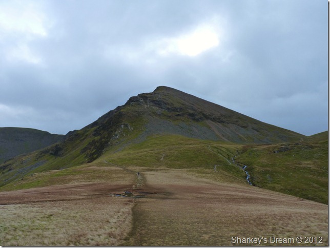 It’s all down to these next few moments, I walk across Coledale Hause & make for the path O’yonder above Liza Beck (R)