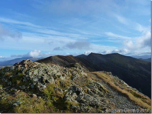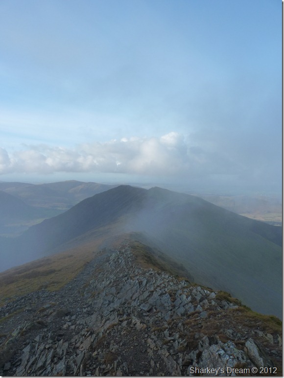 It seems with the sun my second phase has been left behind somewhere along that Whiteside Ridge, as I drop down the winding stony path from Sand Hill I start to flag a little, the wind tears right though me as thoughts of a Crag Hill ascent & a possible completion of the whole Coledale Round lays in tatters.