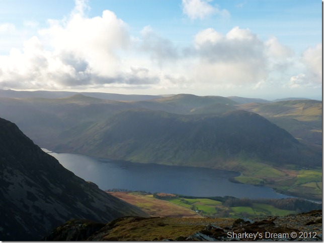 Hazy Mellbreak & Crummock Water, the fells seen behind are that of Starling Dodd & Great Borne over to the right of the picture. |