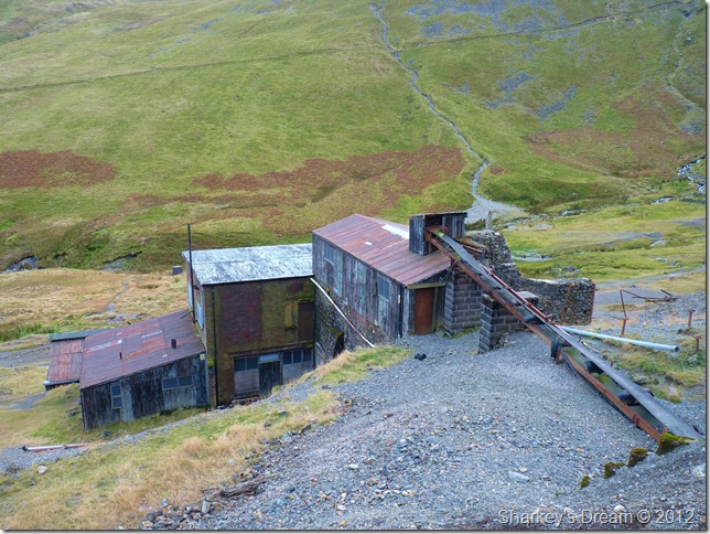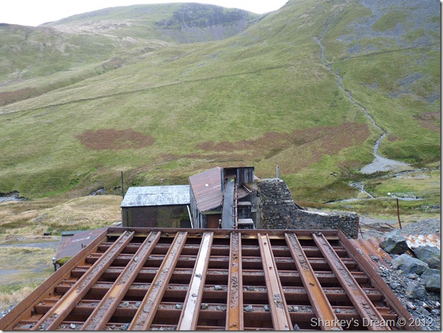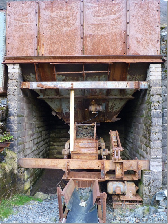 The bucket was filled from above via large steel tubs operated via gravity down the steep valley & then conveyed along the belt into the mill. |