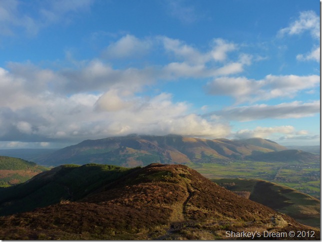 Looking back over Kinn with a distant Skiddaw, Latrigg & Blencathra catching the morning sun. |