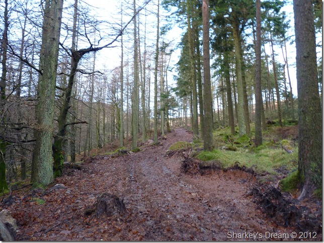 The track is all but useless in that the mud would swallow you whole, it was here I had to opt for a route through the trees over on the right. |