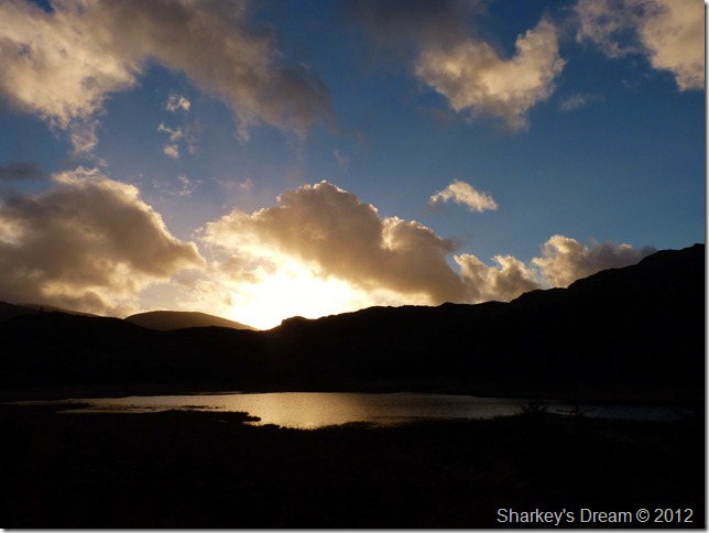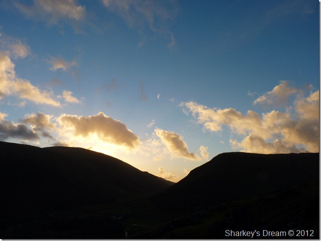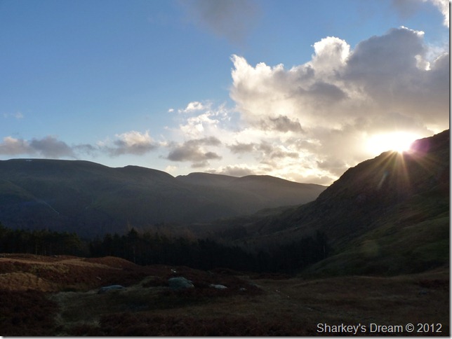 A brief look back at Dunmail Raise before the sun breaches fell side. |