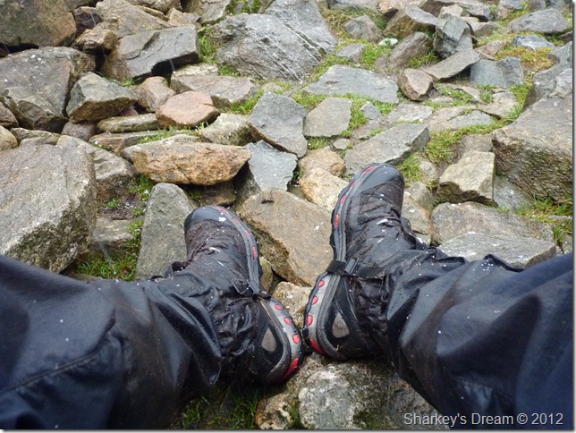 I tuck myself as low as I could within the walls of the shelter, I perch myself upon a wet rock as I figure I ain’t gonna get myself any wetter today.