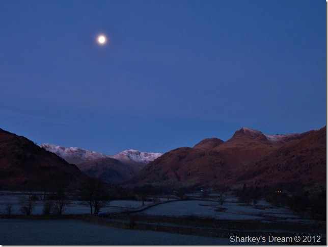 The temptation got the better of me as I drove under moonlight through Great Langdale this morning, a layby at the side of a cattle grid providing the photographic platform, I cautiously press on doing my best to avoid the black ice along the way towards Old Dungeon Ghyll hotel. |