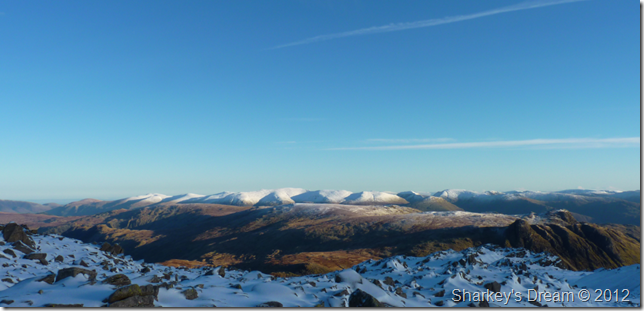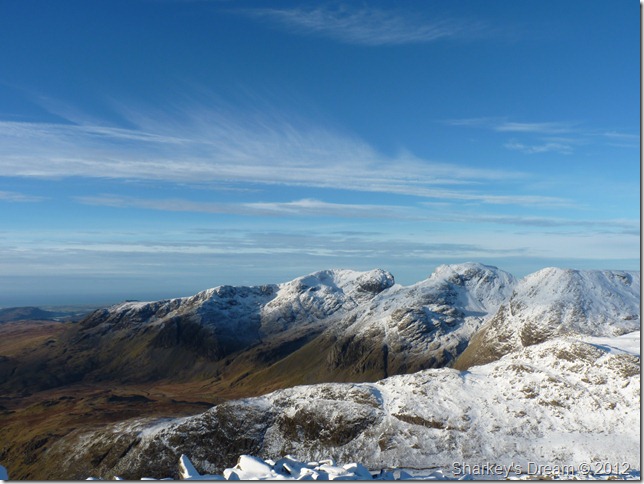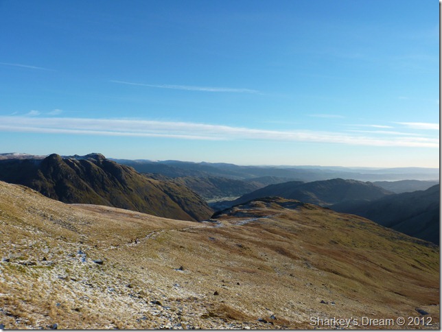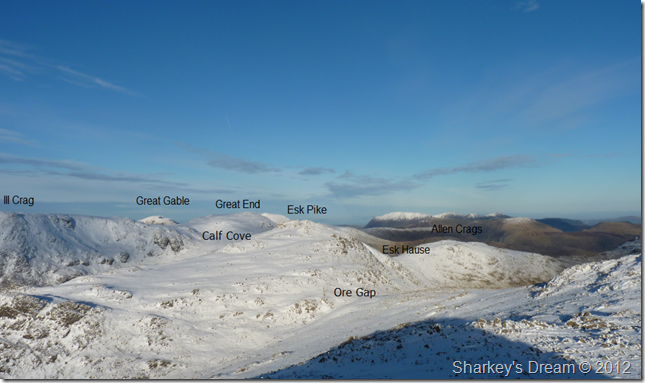 The Scafell range from Bow Fell summit incorporating from LtoR, Slight Side, Scafell, Scafell Pike & finally on the far right lll Crag.