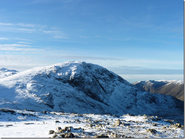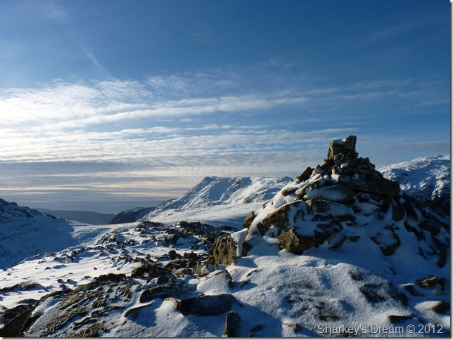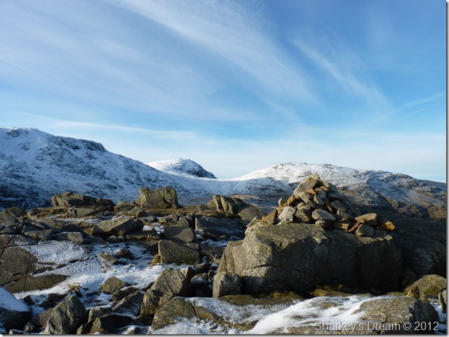 After a quick lunch I tie in the Crampons as they can sometimes work a little loose after prolonged use, I’m now ready to make my descent to Angle Tarn (Langstrath) not before a few more pictures from the summit. |