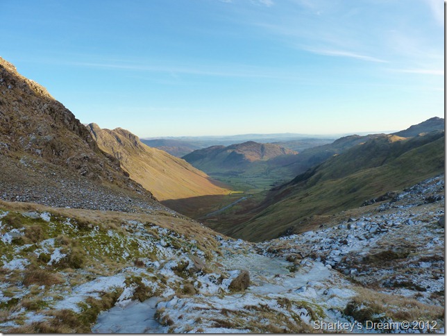 Cool air greets me along the valley floor, it is time to re-coup upon the days preceding’s, my warm breath a reflection of this as I near the end of Mickleden in search of a flask of hot coffee that lies in wait in the boot of my car.