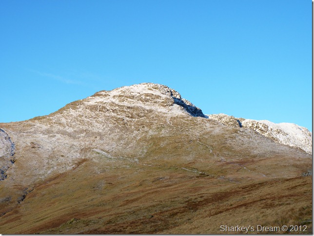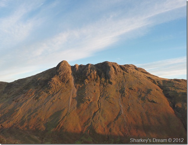 This descent could of very nearly took the shine of the whole day, what you see in the foreground of the picture is the path covered in a thick sheet of ice, I decide that I will leave my Crampons on despite the lack of snow underfoot, I figure here, I am going to need all the luck I can get.
