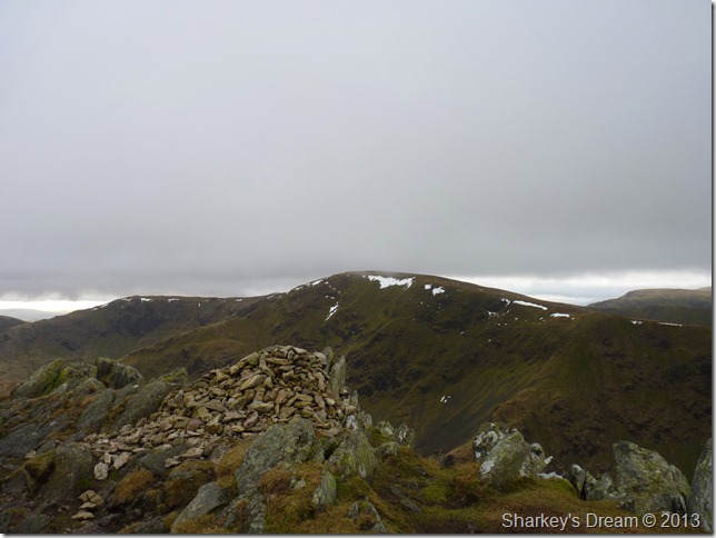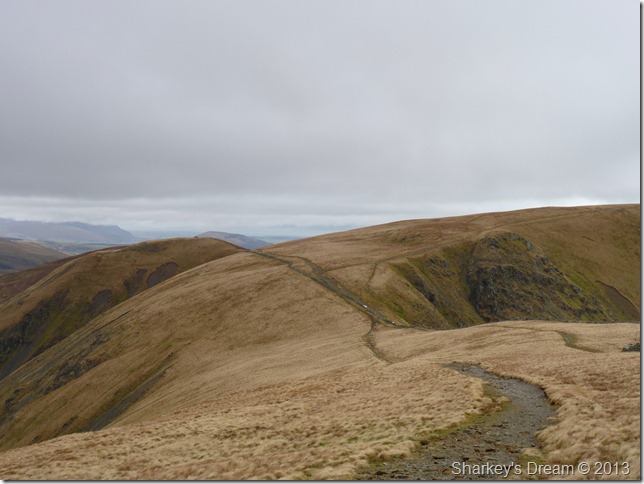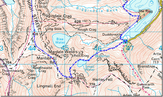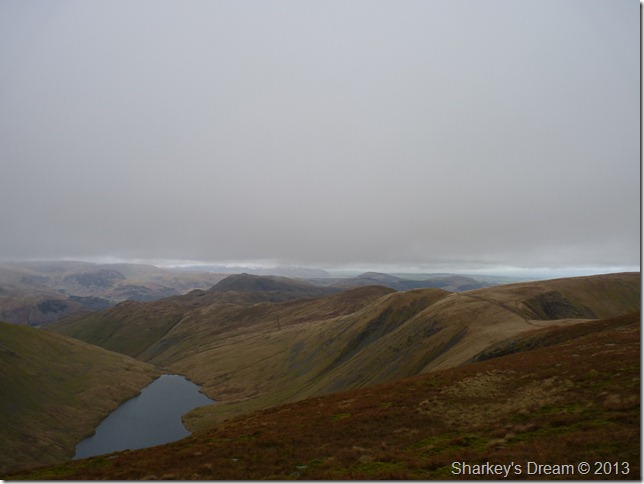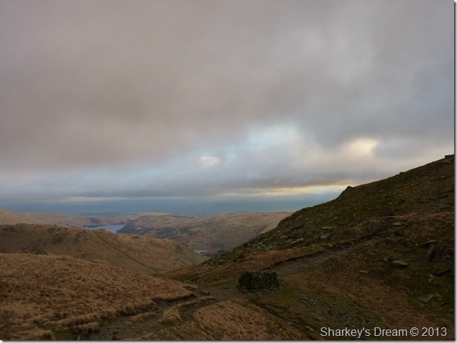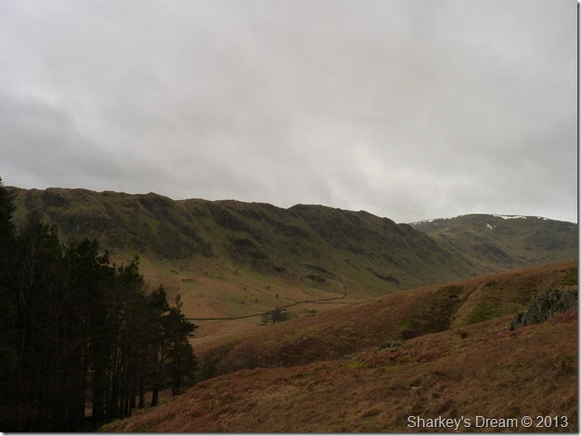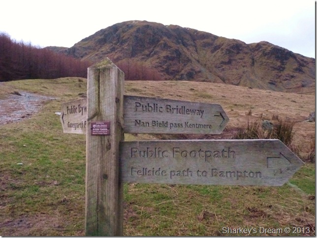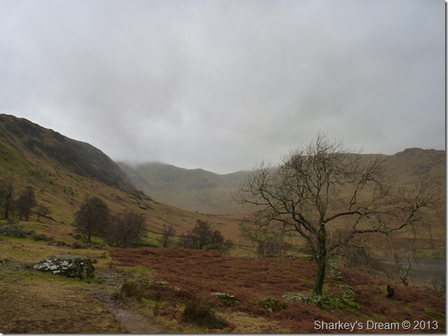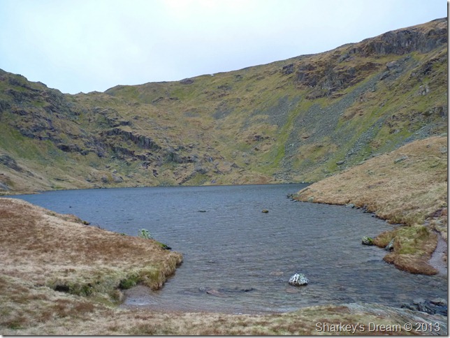 The cloud is high (for now) & a glimpse of colour can be traced from trying sky as I pass through the wooden gate at a crossroads for the Gatescarth & Nan Bield passes, today however, I shall be making my way over to Small Water & the top of the Nan Bield pass. |