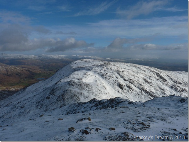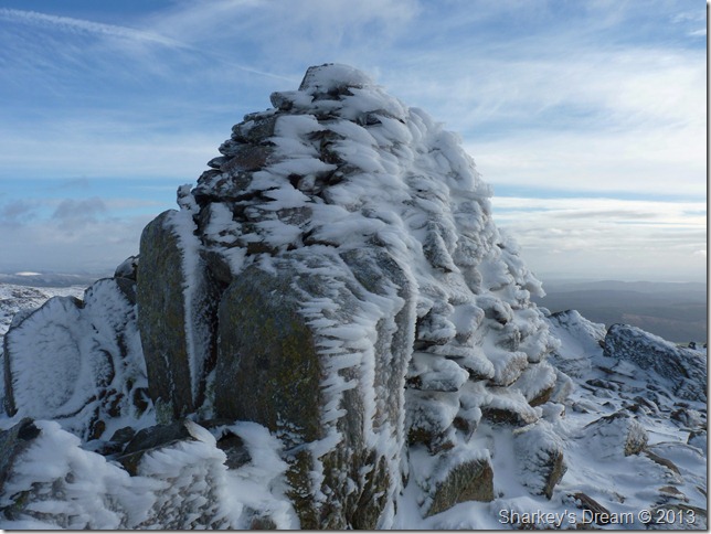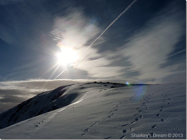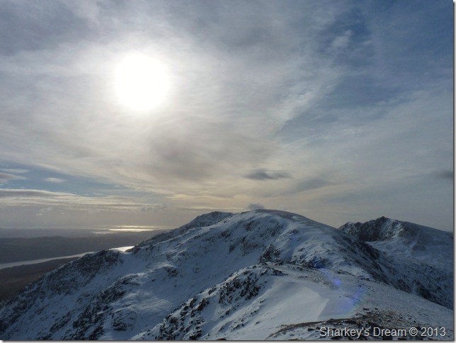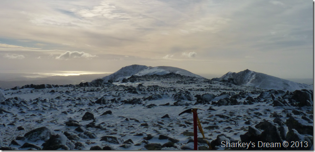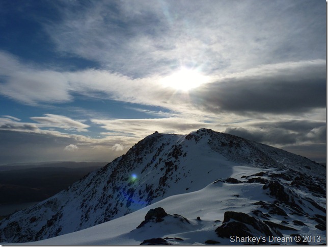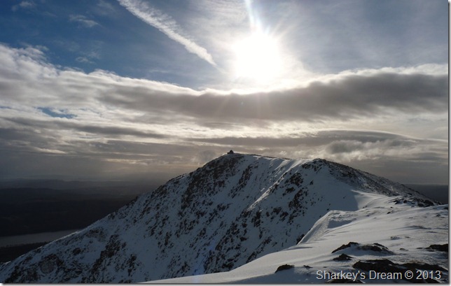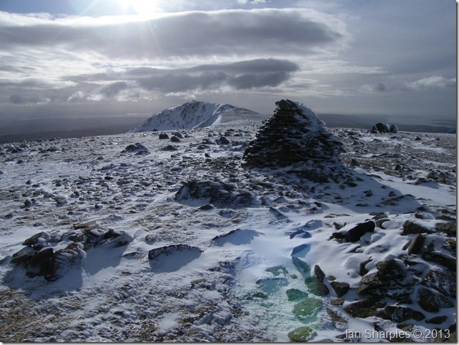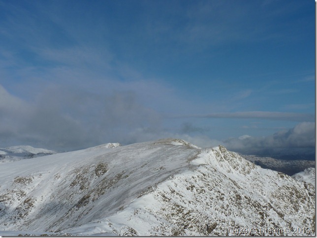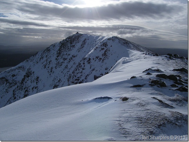 The path from Goats Hawse was solid underfoot, more so on this last section towards the summit, here fresh snow covered verglas covered ground so at some points you really didn’t know you were walking over ice until you started to slide backwards. The reward for this was more than worth it |