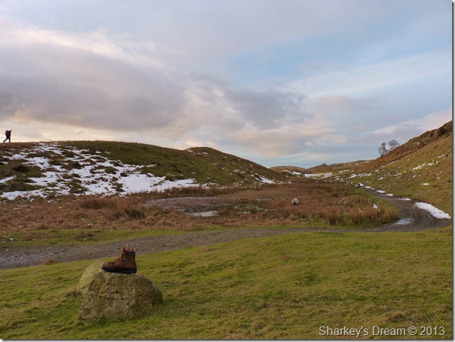 From Boulder Valley it is just a short brisk walk back to the car at Walna Scar, throughout the whole days walking I think more care was taken along this short section of iced-up path than any of the fells or edges we traversed today, luckily we both managed to stay on our feet avoiding any unnecessary embarrassment.