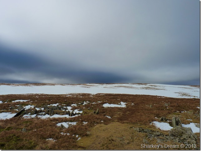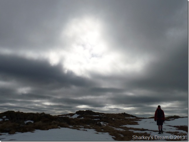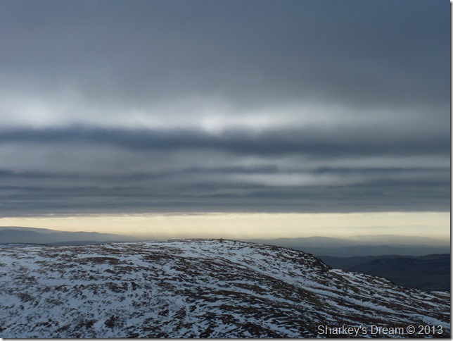 Fed & watered we take in the short crest to Branstree’s summit, not before a couple more pictures of those dramatic skies overhead. |