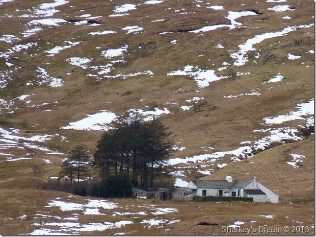 As we rounded the base of Brunt Tounge I use full zoom again to take this picture of one of Lakelands most secluded cottages, now residing as a bothy, it sure did look cold over that way.