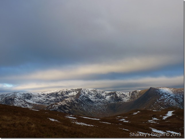 Here’s the High Street fells; my favourite of them all from a different perspective, notice the curvature of the ridge that drops from Kidsty Pike (R) to Short Still (L) which forms a classic bowl affect, something you wouldn’t notice except from this angle. |