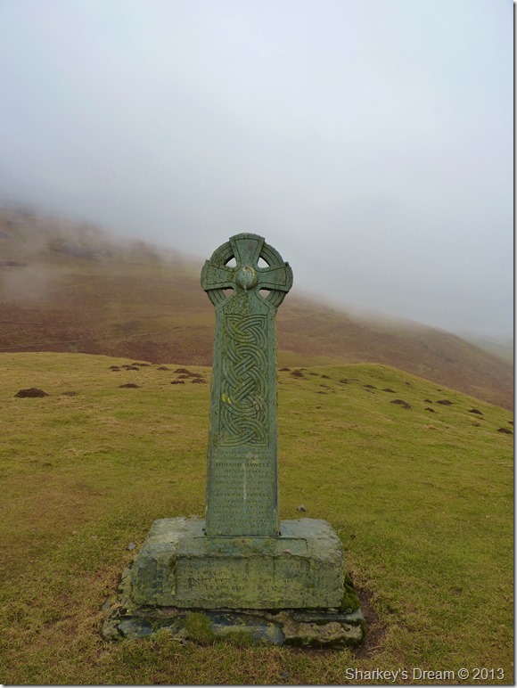 As I hold my camera down & finish what I thought was my summit video two people arrive through the cloud, it is a couple a little older than me red faced as I was through the exposure from the cross winds, we embark on the obvious as I bid them farewell as I start my descent via the tourist path towards Jenkin Hill (the last wire fence seen previous)