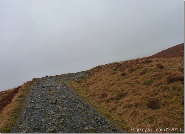 With most of the steep ascent behind me I head into the gloom, little did I know it would be a good four hours later until I fix my eyes on any fixable objects from here on in. |