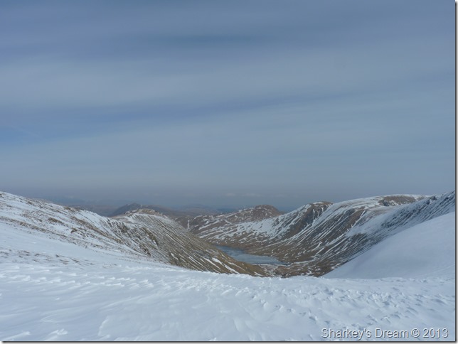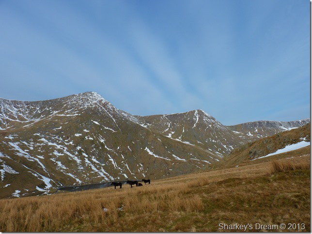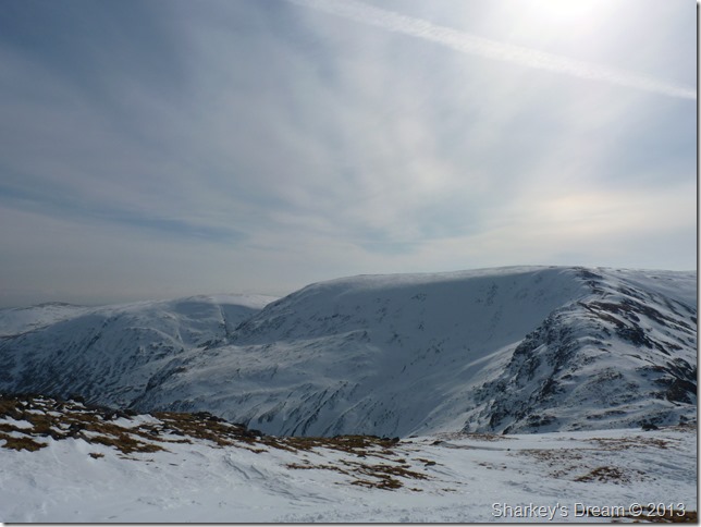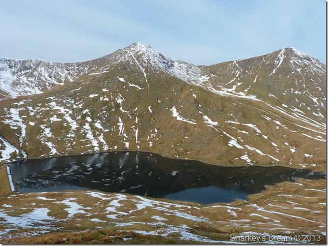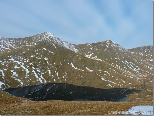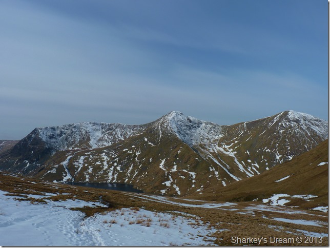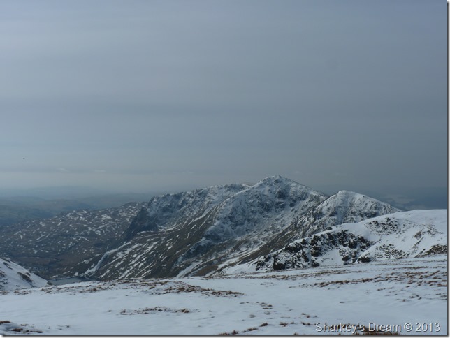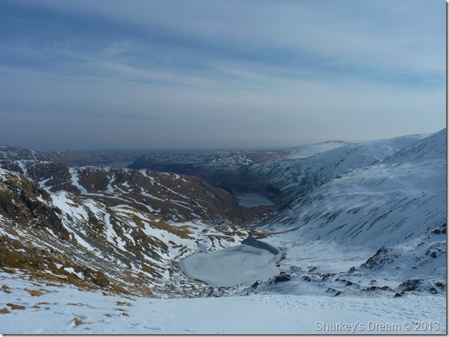 Gray Crag on the left & Riggindale, The Knott & The Nab far far right, below is a very cold looking Hayeswater. |