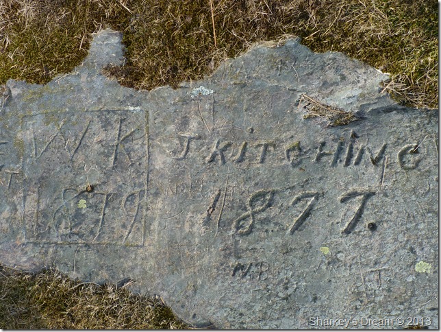 Nineteenth century graffiti found along the pathway on Smallthwaite Knott. |