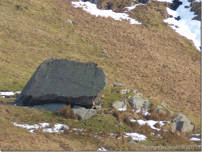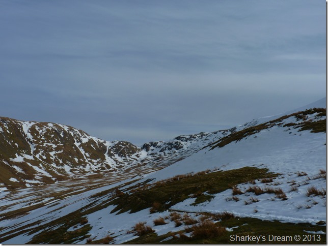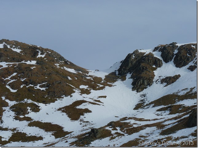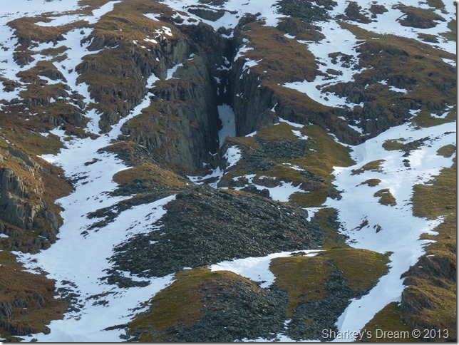 From a distance I could pick my route over the snow wall & try to pick the best route up seeing as the usual zig-zag path was under a foot of snow.