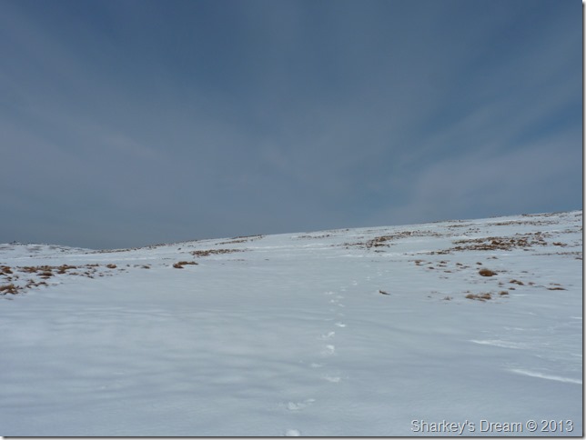 I trained my eyes towards the grassy section towards the left but found myself equally enjoying the hard way up as I kicked foot holes into a thick crust of snow.