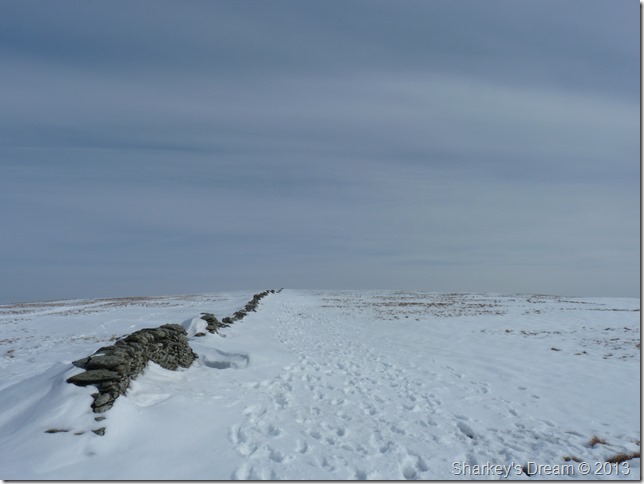 I was under no illusion that I was well within the snowline which can only be described as menacing from here on in, here I trained the mind that I was going to punch through its thick crust under thaw yet the confusing matter was, at times I didn’t punch through, it held my weight so with confidence underfoot I press on over grass, ice & over crusty snow.