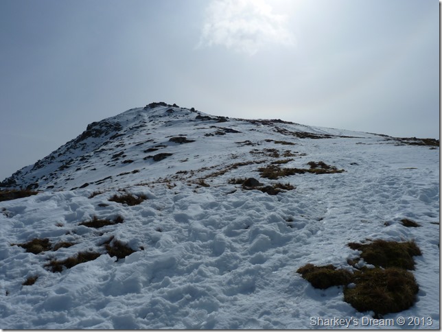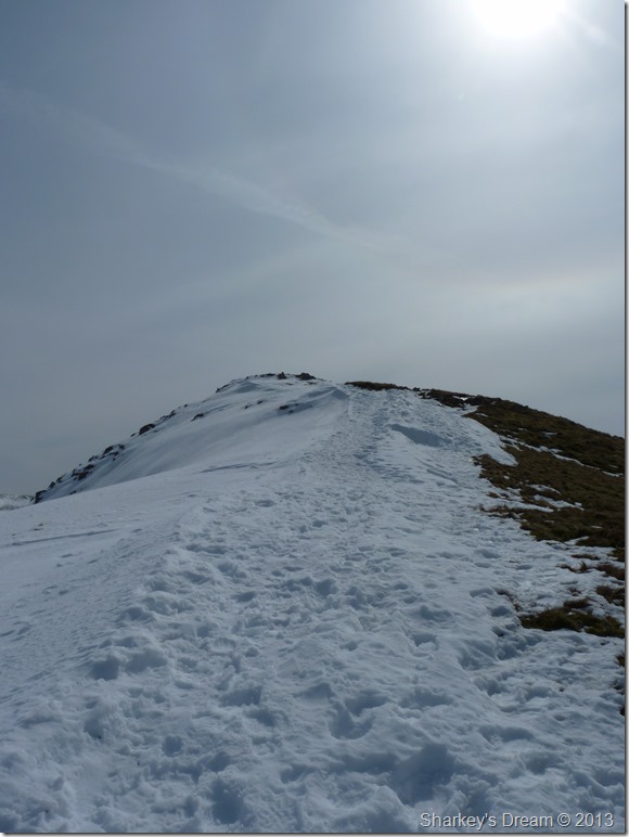I had my reservations on taking on the ridge in such conditions which were already starting to take effect on my limbs, the knees felt a little ‘shot at’ through the countless shudders they took after punching through countless snow under thaw.