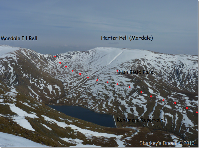 Looking towards the top of Nan Bield Pass from Smallthwaite Knott.