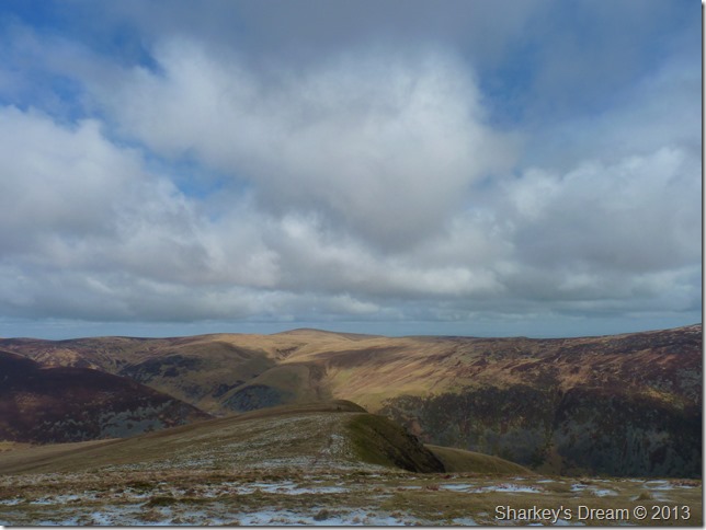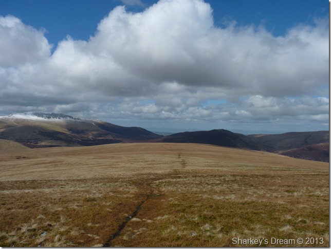 Here, looking towards Bowscale Fell, Bannerdale Fell, Blencathra & Mungrisdale Common as we descend Skiddaw. |