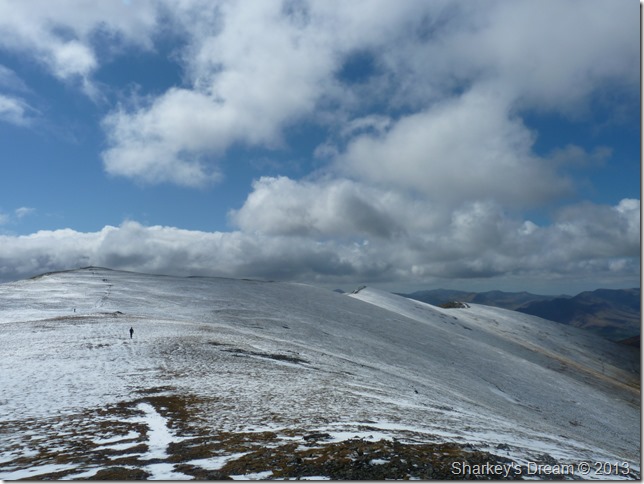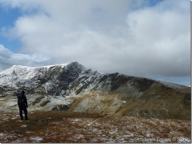 Sharp Edge as we take on the slight descent to Glenderamackin Col. |