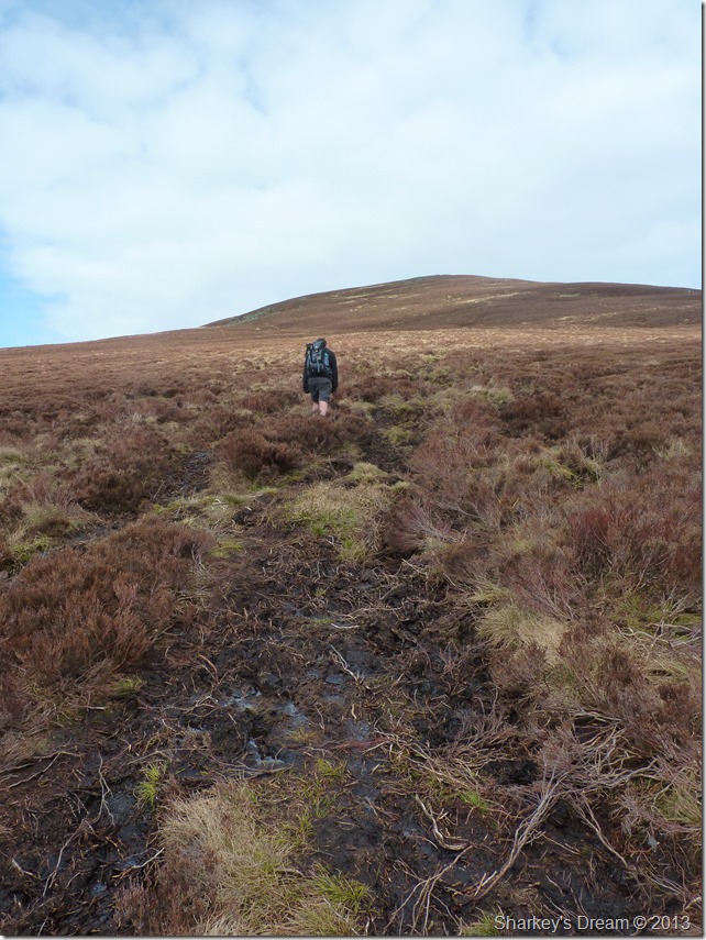 Ascending Great Calva through the quagmire.