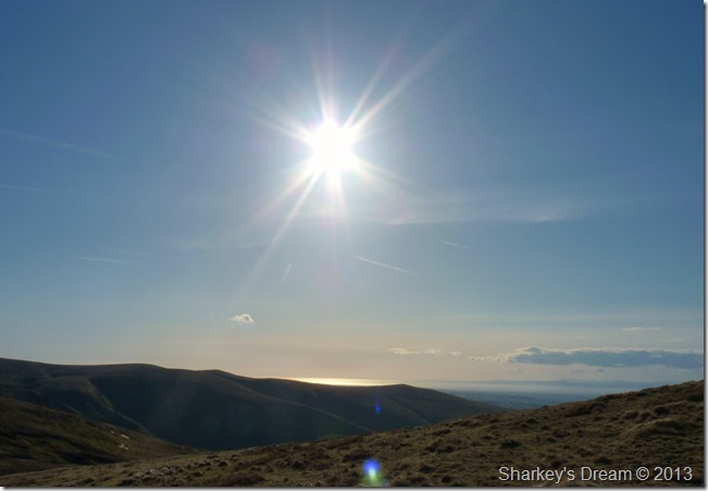 The Cumbrian coastline glistens as we make our 9th & final ascent on High Pike. |