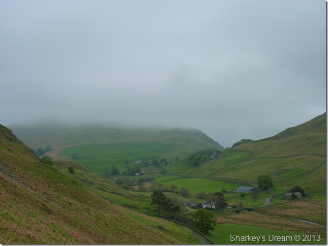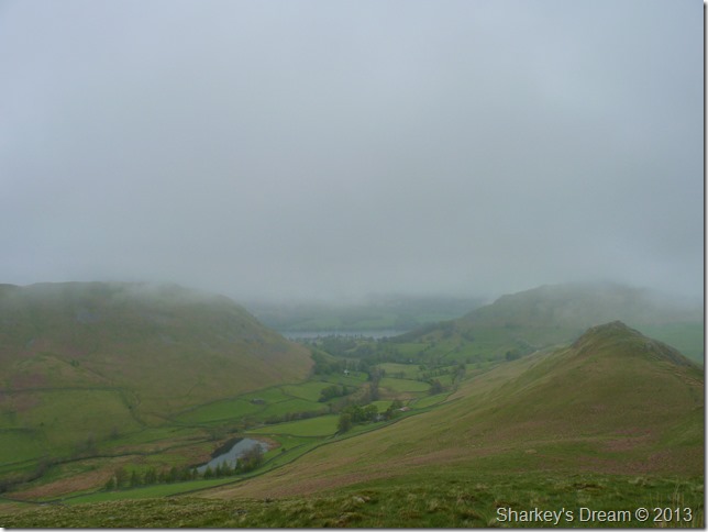 Here looking back on Martindale with Hallin Fell summit under the low cloud. Martindale Old Church can be seen at the bottom of the picture on the right hand side. |