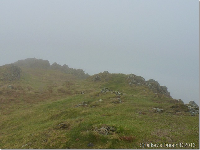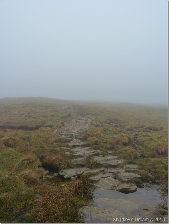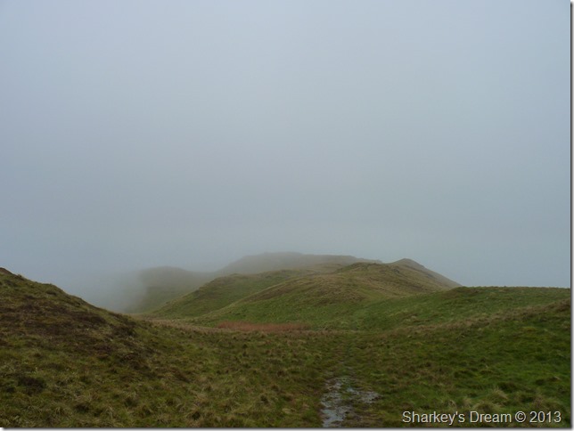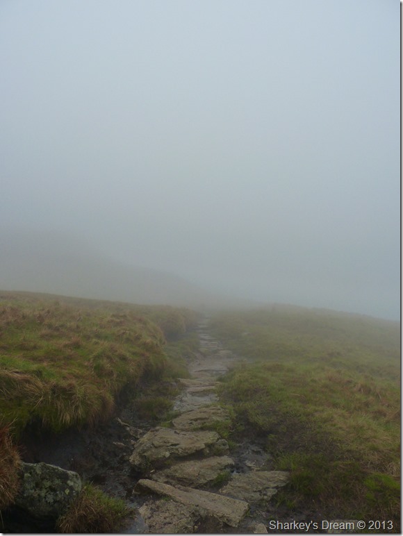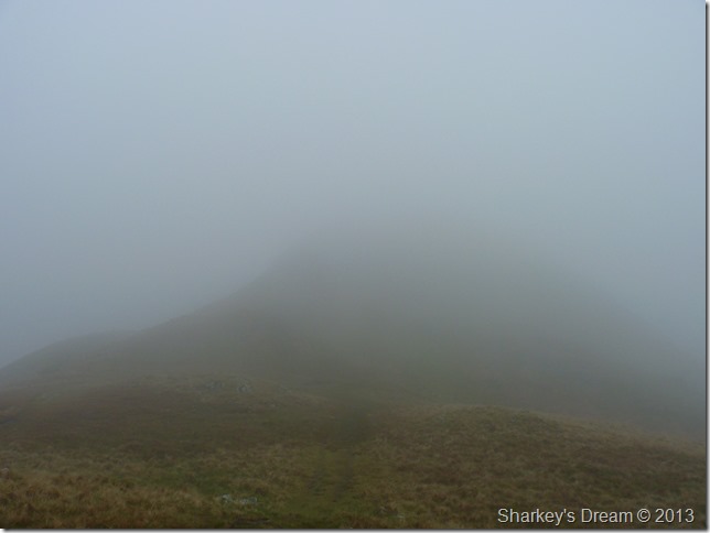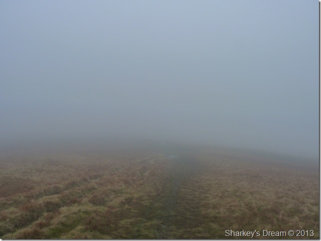 Well, it was bound to happen as I seamlessly continue along a grassy path & neon miss the Pikes through the mist, here I had to back-track a little over pathless bog…even the experienced get bitten on the arse…or that might be just me!