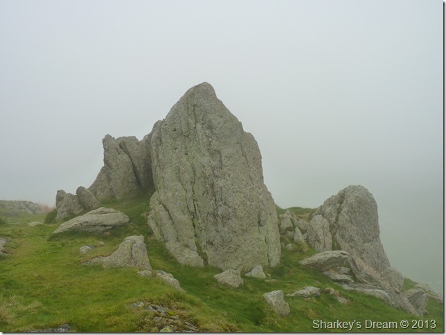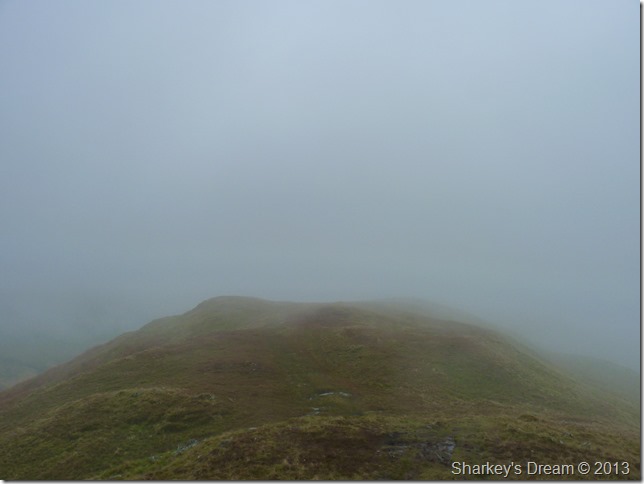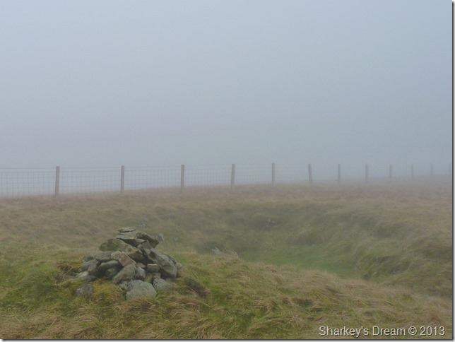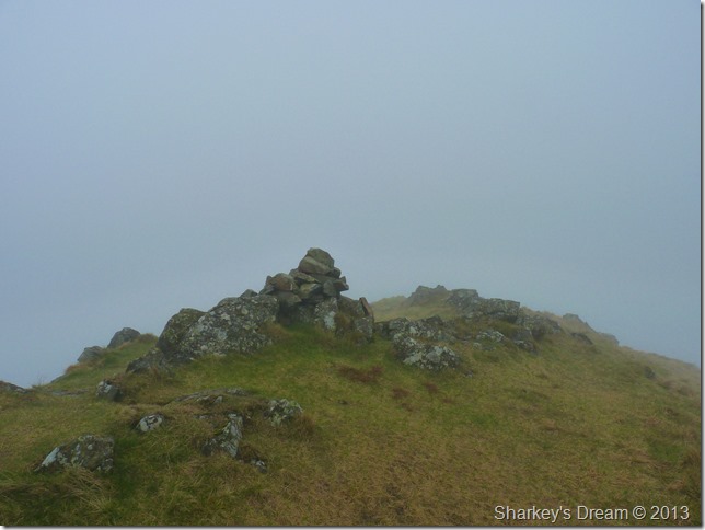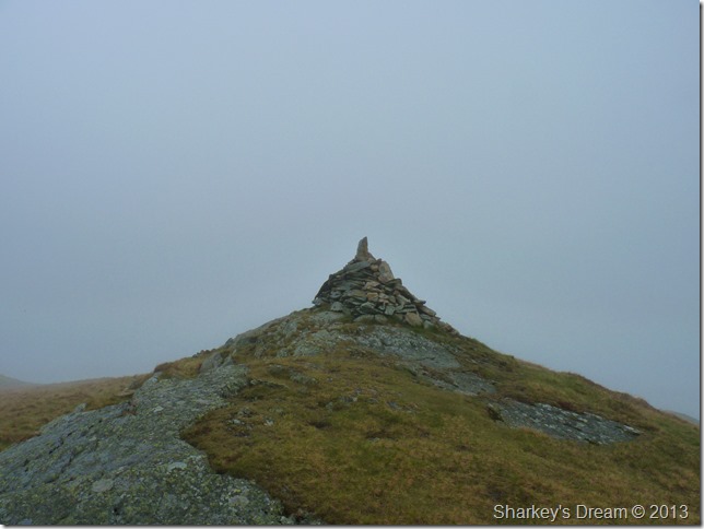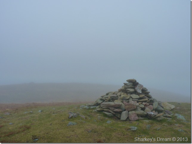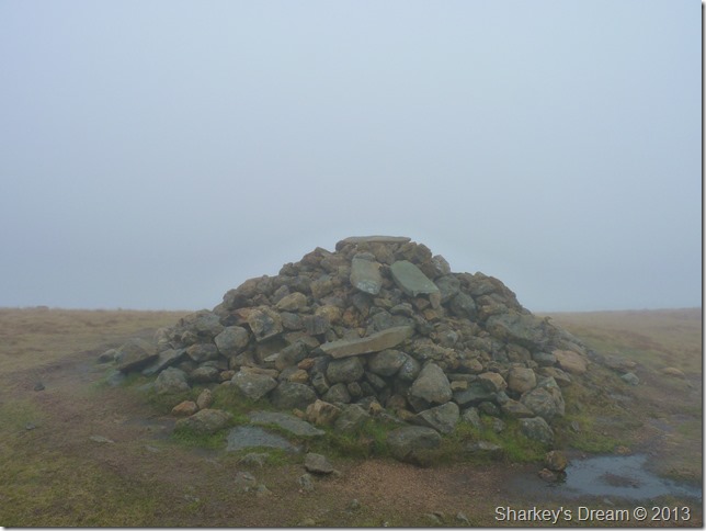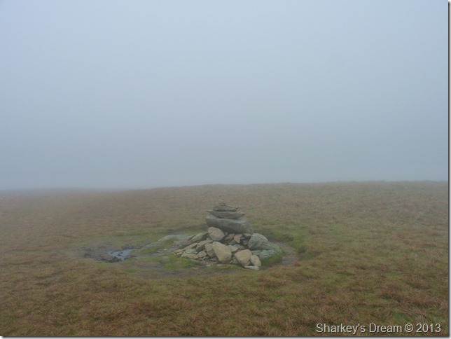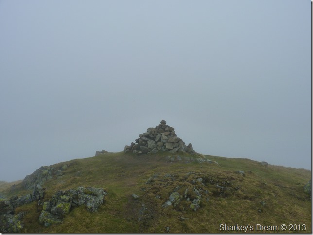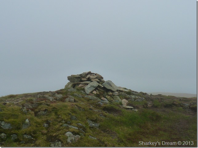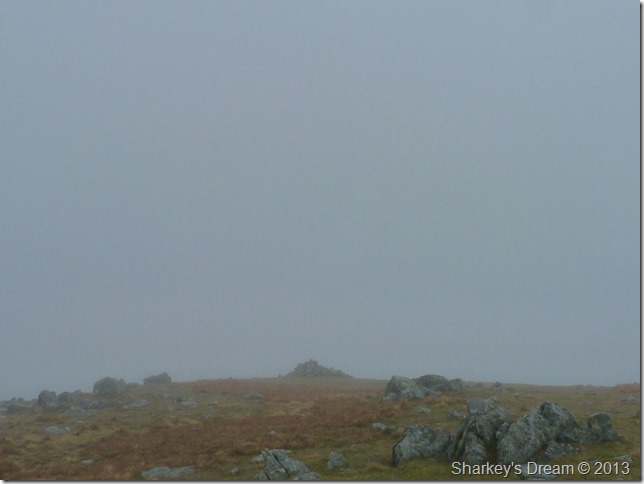 It was now time to roll down the sleeves as a cool breeze had got up, this was as far as I got to the main summit cairn without a passing glance…was the lack of views now starting to take its toll on me I wonder? |