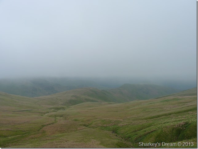 Looking back on the low cloud that has dominated my day along with Wether Hill & my descent via Groove Gill. |
