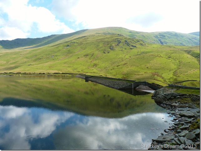 Lingmell End with a very peaceful Kentmere Reservoir taken from its Weir. |