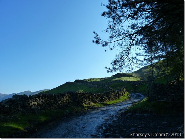 The early morning air is warm & fresh & rapidly rising, there is no doubt about it todays walk is going to be a warm one. I leave the churchyard turning right in shorts & short sleeves towards the Troutbeck end of the Garburn Pass. |