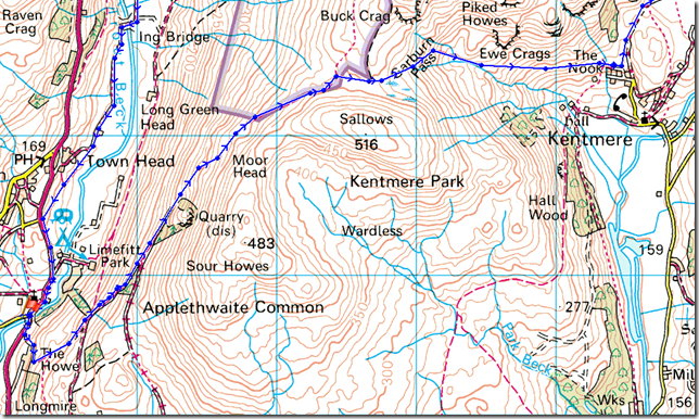 Yoke & Rainsborrow Cove as I pass Kentmere Cottages below the spoil heaps.