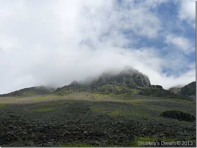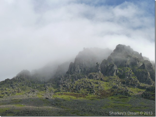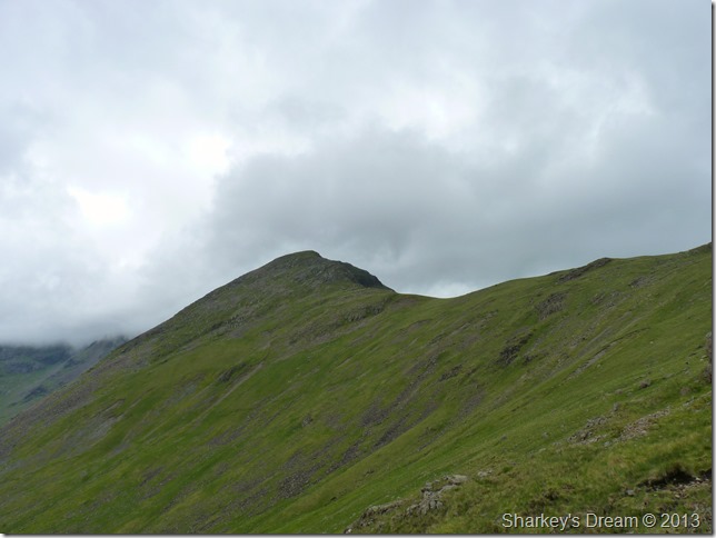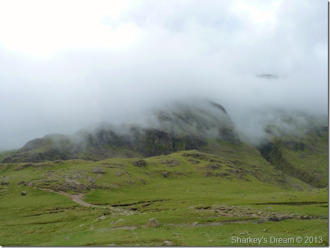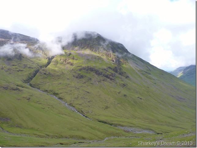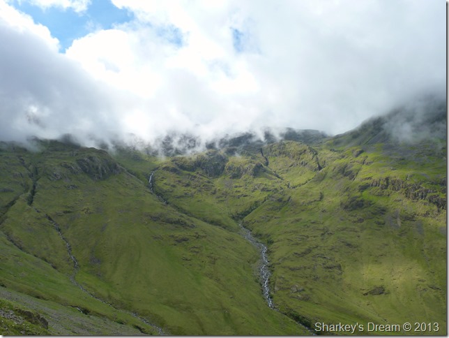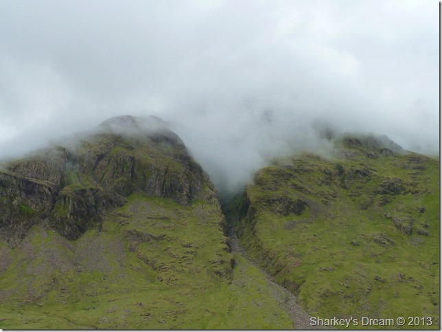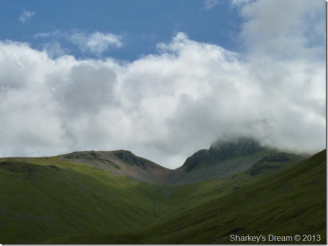 Within minutes the cloud had lifted & the sun came out to reveal Piers Gill & Lingmell. |