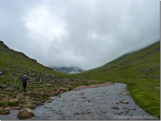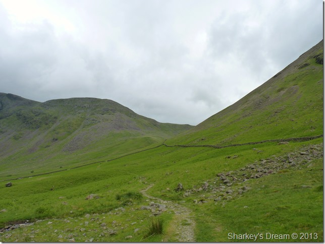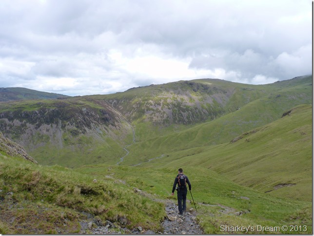 Shaun takes the lead for he is in familiar territory as he used The Black Sail Pass as a means of gaining Loft Beck (Seen on the opposite side of the valley) for his Coast to Coast walk back in June 2012 almost a year ago to the day.