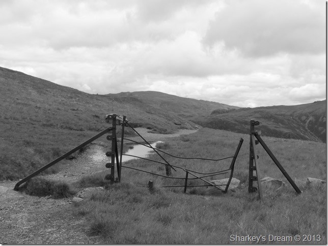 The iconic disused gate & post found at the top of Black Sail Pass, more walkers will confirm that this is truly the summit of Black Sail than the actual cairn in the previous photo. |