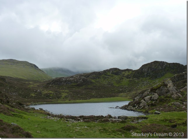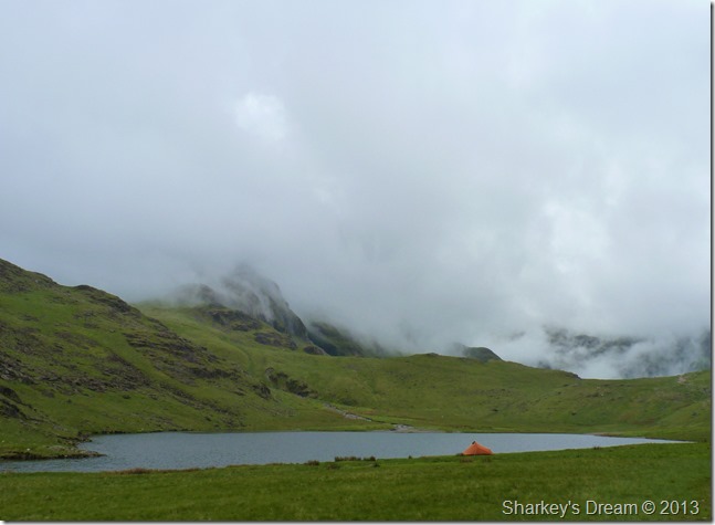 Blackbeck Tarn, notice the low cloud rolling back in devouring the Gables once more. |